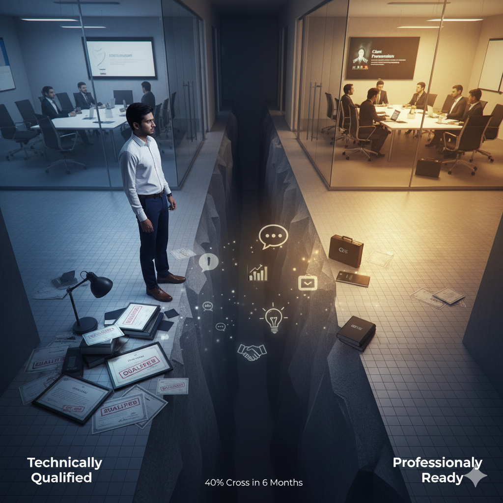 Your professional qualification proves technical competence. These 5 meta-skills prove job-ready advisory capability. LinkedIn's 2025 India Hiring Report shows professionals demonstrating these skills command 58% salary premiums.