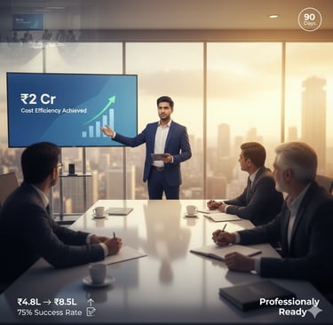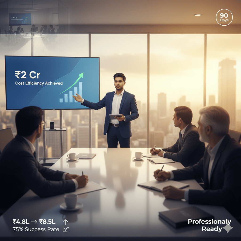 Priya (CMA, 2 attempts, age 25) answered the same question differently: "I'd benchmark their cost structure against industry leaders, identify the biggest gap, quantify ₹2-3 crore improvement potential, and create a 90-day implementation roadmap." Result? KPMG offer at ₹8.2 LPA.