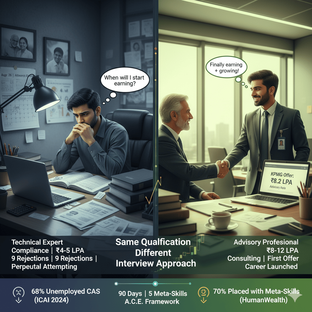 ICAI's 2024 Placement Report reveals 68% of qualified CAs remain unemployed or underemployed—not due to technical gaps, but inability to demonstrate advisory-level problem-solving and communication skills that Big 4 firms actively seek.