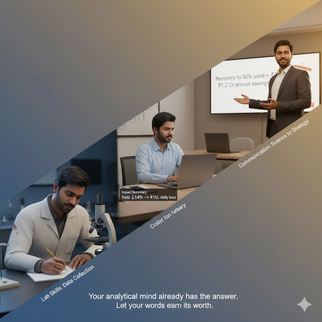 BSc/MSc graduates stuck at ₹35K stipends while others earn ₹6+ LPA—discover why your analytical skills deserve corporate salaries and how to translate lab expertise into business communication that pharma, healthcare, and analytics companies actually pay for. Transform from research assistant to corporate analyst in 90 days: Learn the 3 critical skills (communication, critical thinking, and emotional intelligence) that convert scientific training into measurable business value and crack your first ₹6 LPA+ offer.