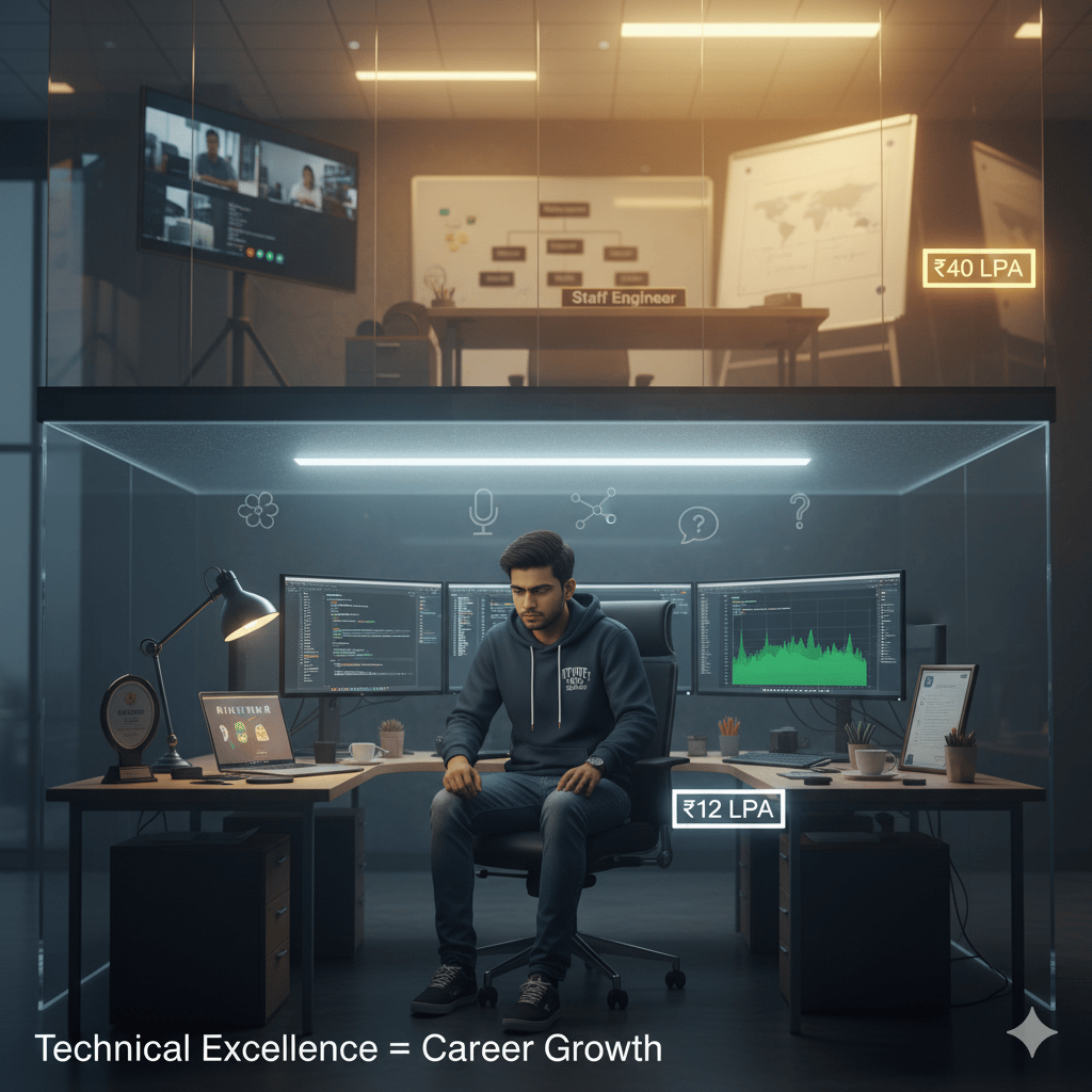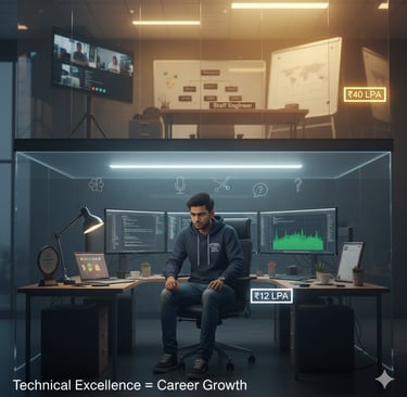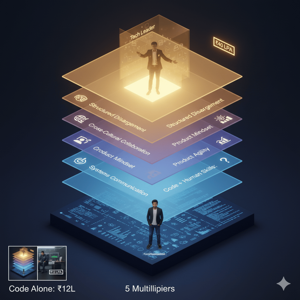 What separates ₹15 LPA from ₹40+ LPA isn't LeetCode mastery—it's 5 human problem-solving and communication skills that determine whether you land commodity SDE-1 roles or premium Staff Engineer, TPM, and ML Engineer positions.
