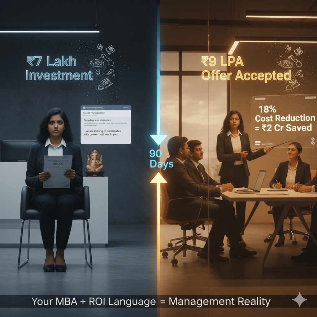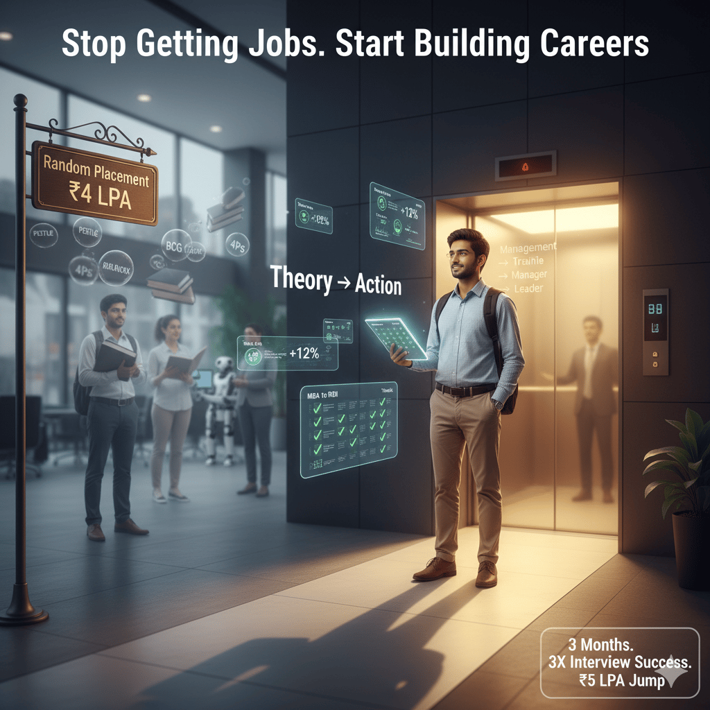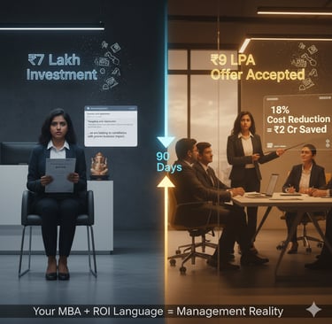 "MBA fresher stuck in coordinator roles? Transform ₹4-6 LPA into ₹8-10 LPA management trainee offers in 90 days. Master ROI storytelling, business metrics, and problem-solving for FMCG, BFSI & consulting careers."